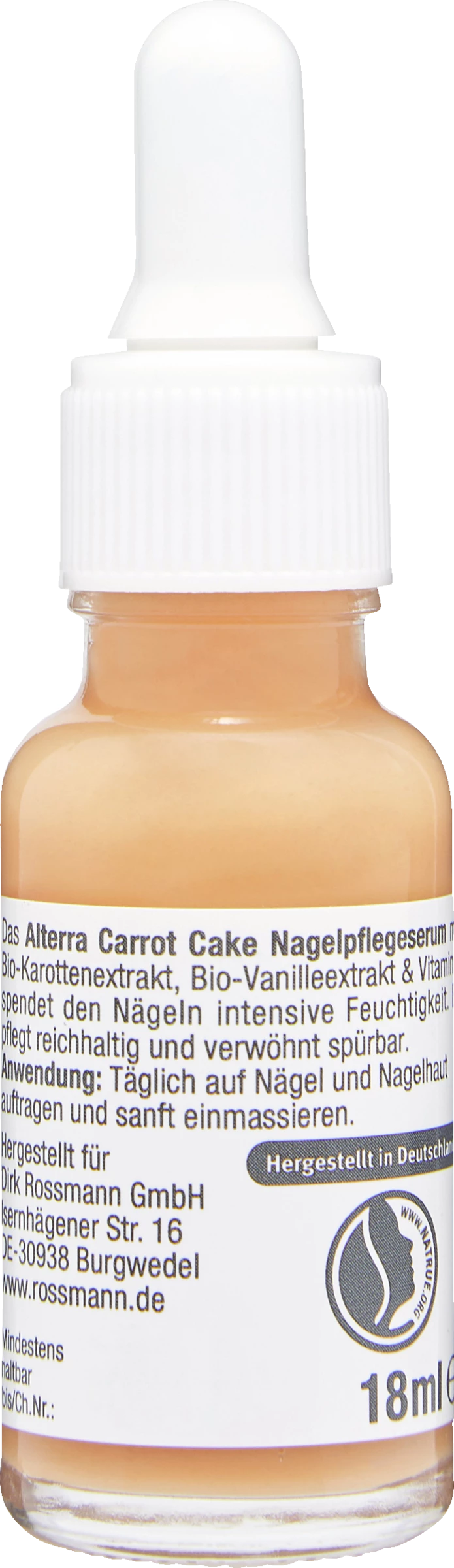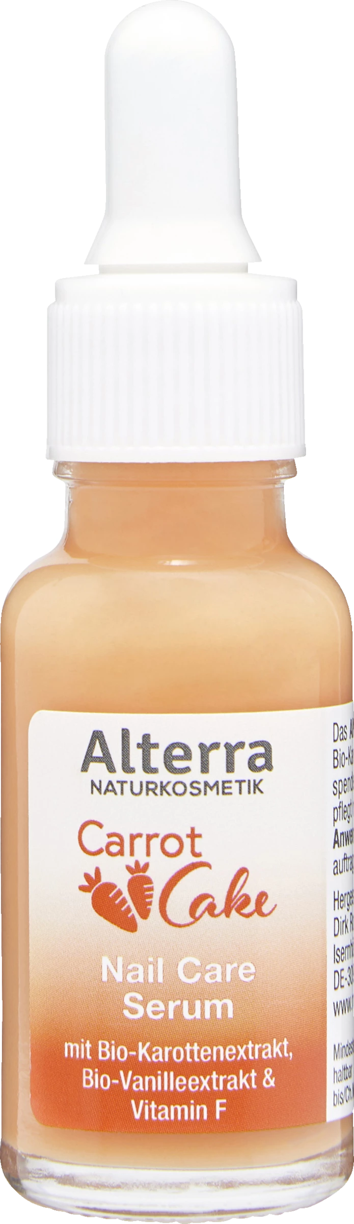 Das Alterra Carrot Cake Nagelpflegeserum mit Bio-Karottenextrakt, Bio-Vanilleextrakt & Vitamin F spendet den Nägeln intensive Feuchtigkeit. Es pflegt reichhaltig und verwöhnt spürbar.