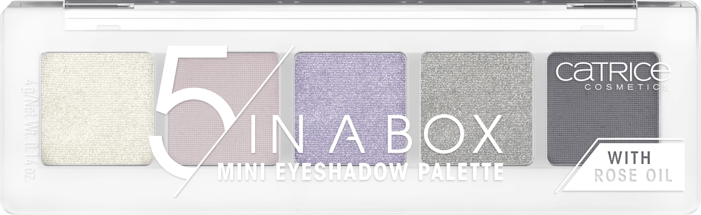 Den perfekten Augen-Make-up-Look immer dabei – das hat man jetzt mit der 5 In A Box Mini Eyeshadow Palette in praktischer Reisegröße. Die Paletten sind frei von Mikroplastikpartikeln und enthalten jeweils fünf Shades, mit denen sich in Sekundenschnelle wunderschöne, komplette Eye-Make-up-Looks kreieren lassen. Die hochpigmentierten Nuancen mit wertvollem Rosenöl sind super soft und lassen sich so ganz einfach verblenden.