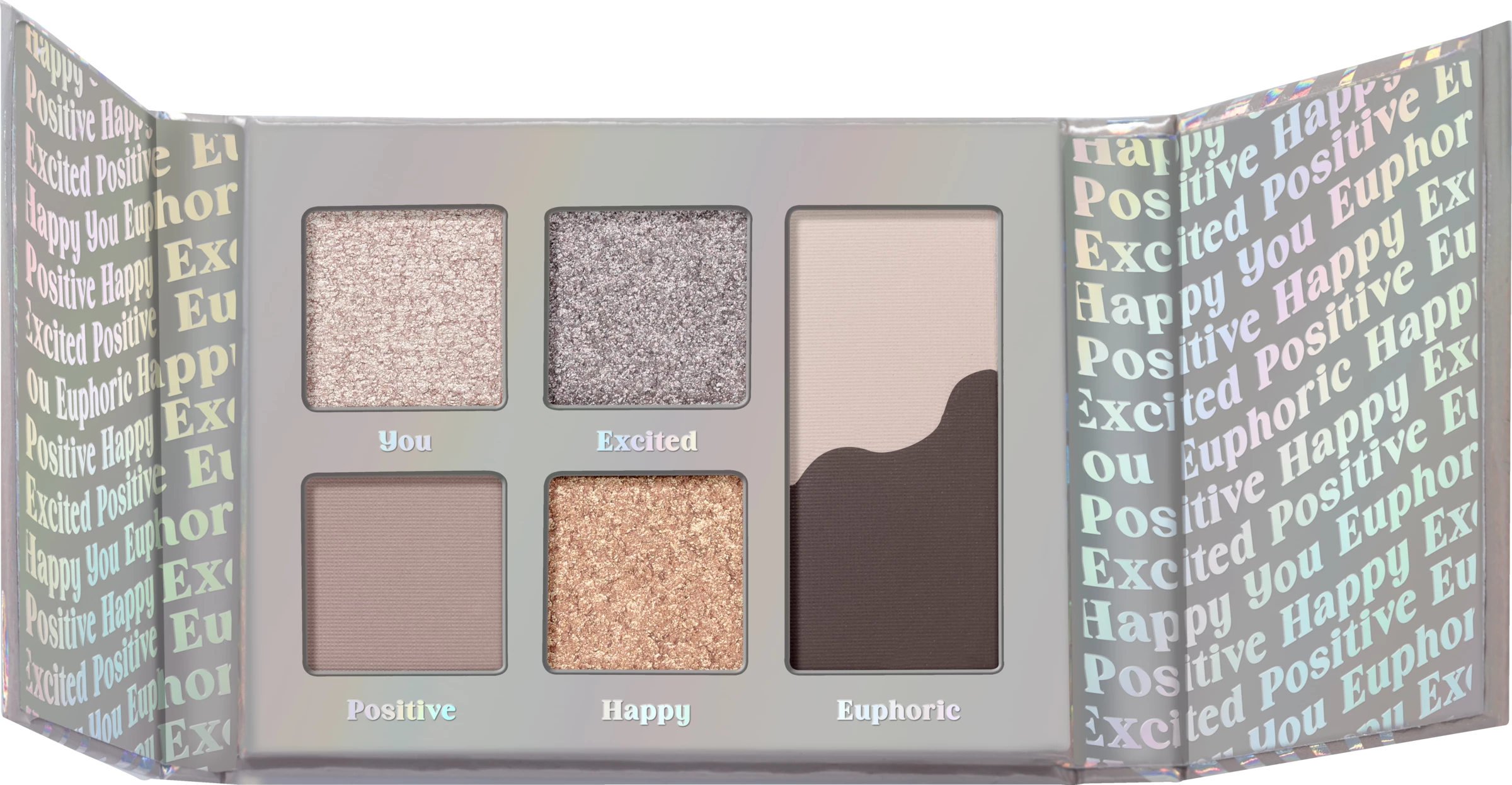 Euphoric, Positive – TALC, MICA, SILICA, MAGNESIUM STEARATE, DIMETHICONE, HYDROGENATED POLYISOBUTENE, POLYISOBUTENE, BIS-DIGLYCERYL POLYACYLADIPATE-2, TOCOPHERYL ACETATE, ETHYLHEXYLGLYCERIN, PHENOXYETHANOL, MAY CONTAIN/[+/-]: CI 77007 (ULTRAMARINES), CI 77491, CI 77492, CI 77499 (IRON OXIDES), CI 77891 (TITANIUM DIOXIDE). Excited, Happy – INGREDIENTS: DIMETHICONE, MICA, TALC, MAGNESIUM STEARATE, TRIMETHYLSILOXYSILICATE, DISILOXANE, DIMETHICONE/VINYL DIMETHICONE CROSSPOLYMER, TOCOPHERYL ACETATE, ETHYLHEXYLGLYCERIN, PHENOXYETHANOL, MAY CONTAIN/[+/-]: CI 77491, CI 77492, CI 77499 (IRON OXIDES), CI 77891 (TITANIUM DIOXIDE). You – INGREDIENTS: MICA, DIMETHICONE, TALC, MAGNESIUM STEARATE, TRIMETHYLSILOXYSILICATE, DISILOXANE, DIMETHICONE/VINYL DIMETHICONE CROSSPOLYMER, TOCOPHERYL ACETATE, ETHYLHEXYLGLYCERIN, PHENOXYETHANOL, CI 77491, CI 77492, CI 77499 (IRON OXIDES), CI 77891 (TITANIUM DIOXIDE).