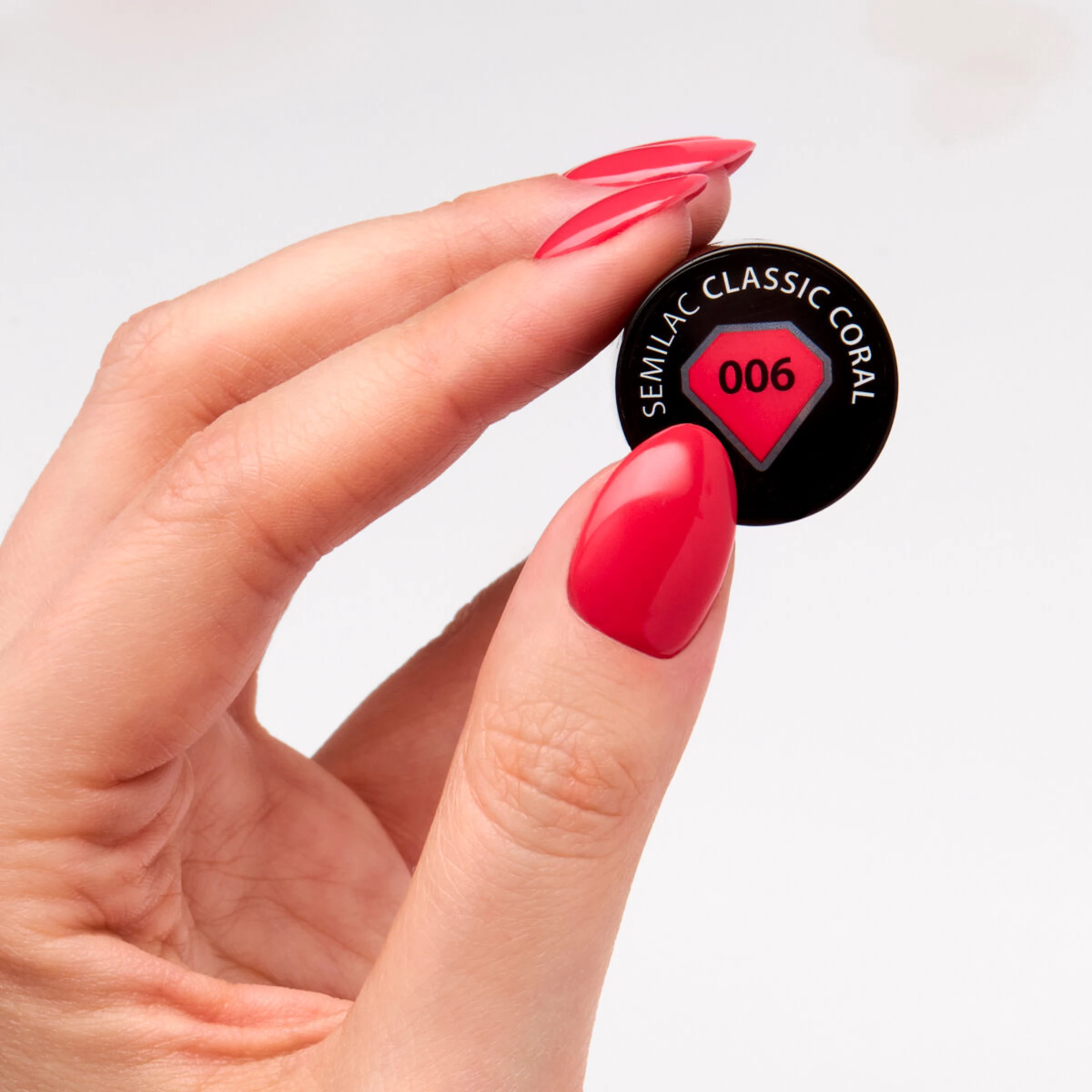 Eine dünne Schicht Semilac Color auf die ausgehärtete Semilac Base Schicht auftragen und dann unter einer UV-Lampe aushärten. Nicht direkt auf die Nagelplatte auftragen. Für einen zufriedenstellenden Look kann die Anwendung von Semilac Color wiederholt werden. Zum Abschluss des Nageldesigns Semilac Top auftragen und aushärten.AUSHÄRTEZEITUV LED-Lampe 12 W – 60 SekUV LED-Lampe 24W/36 – 30 SekUV LED-Lampe 24W/48 – 30 Sek